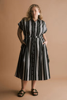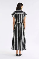 The Reza Shirt Dress is a fresh new summer style, crafted from 100% crisp organic cotton. With its classic collar and button-through placket, this midi dress combines timeless tailoring with modern ease. Designed for comfort and movement, it features a regular fit through the bust, flowing into an A-line silhouette from the waist with soft gathers and an encased elasticated waistband. Short batwing sleeves with turned-up cuffs, side seam pockets, and a curved hem with splits complete the look.