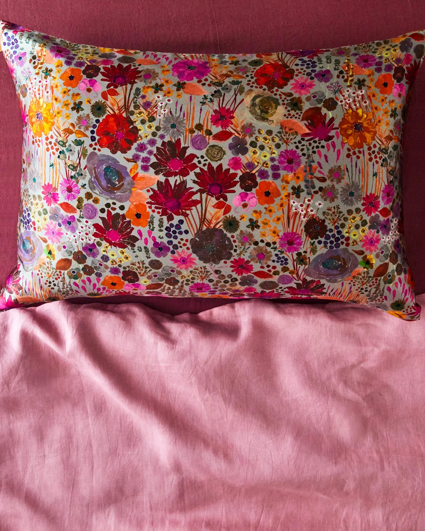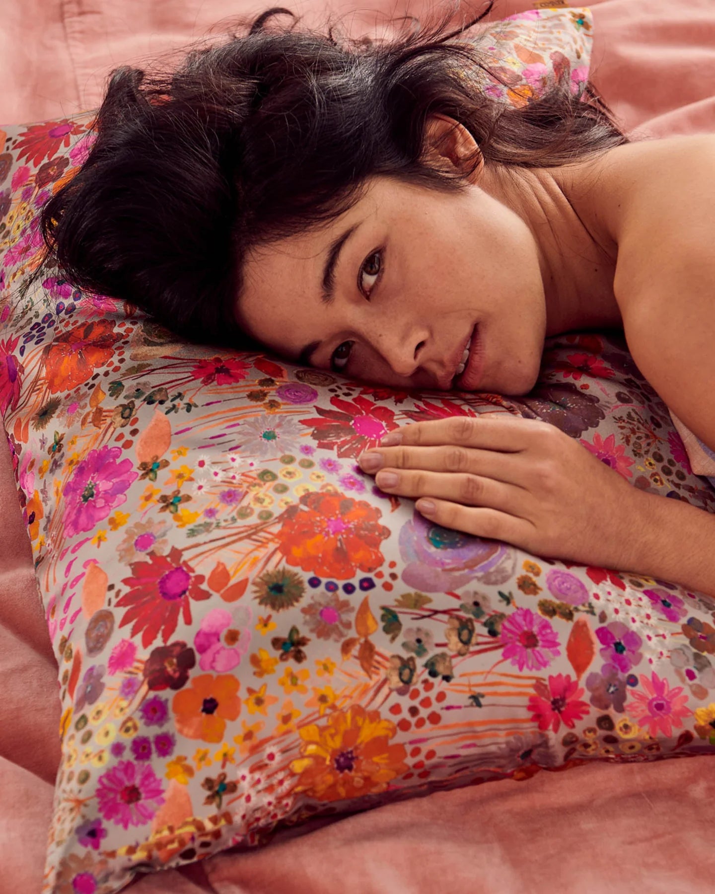 Wake up glowing with our Glow Getter Silk Pillowcase in Field of Dreams – a beloved Kip&Co classic, now in the softest 22 momme silk. This dreamy floral print is matched only by the feel of premium 100% natural mulberry silk, renowned for its skin-loving, hair-smoothing magic.