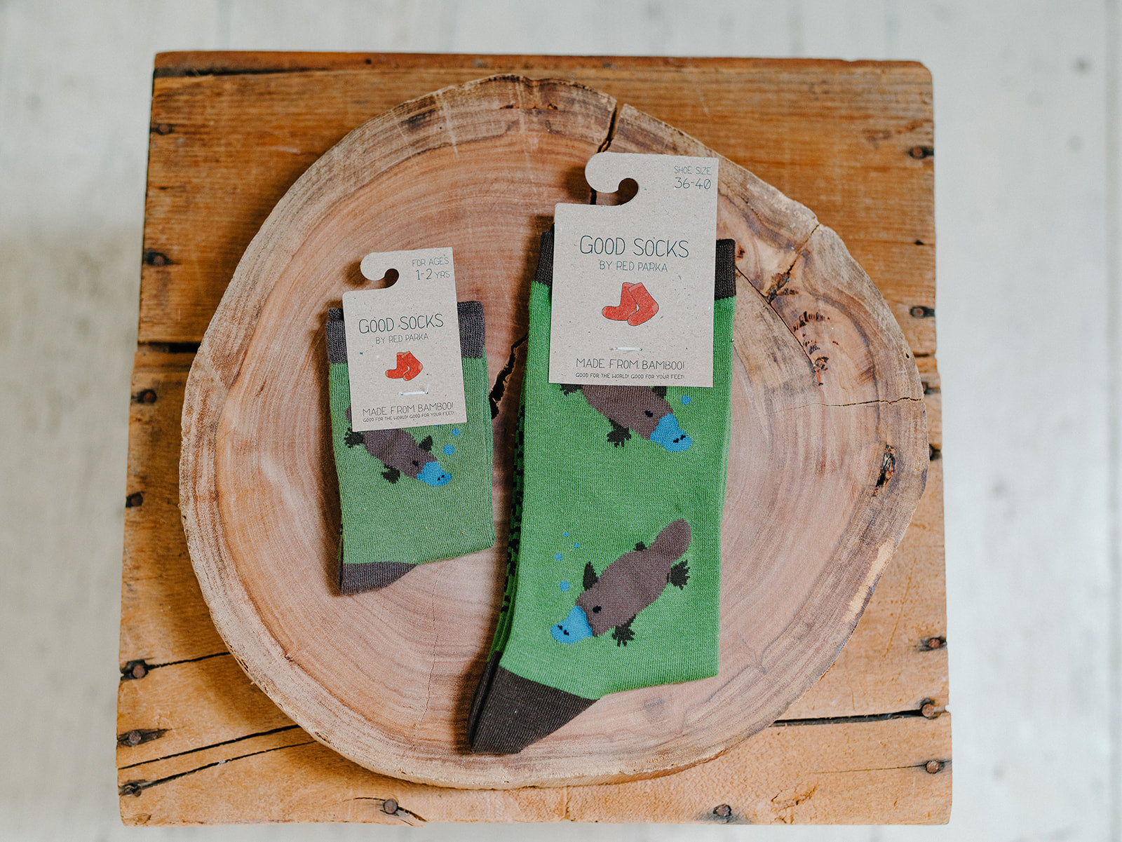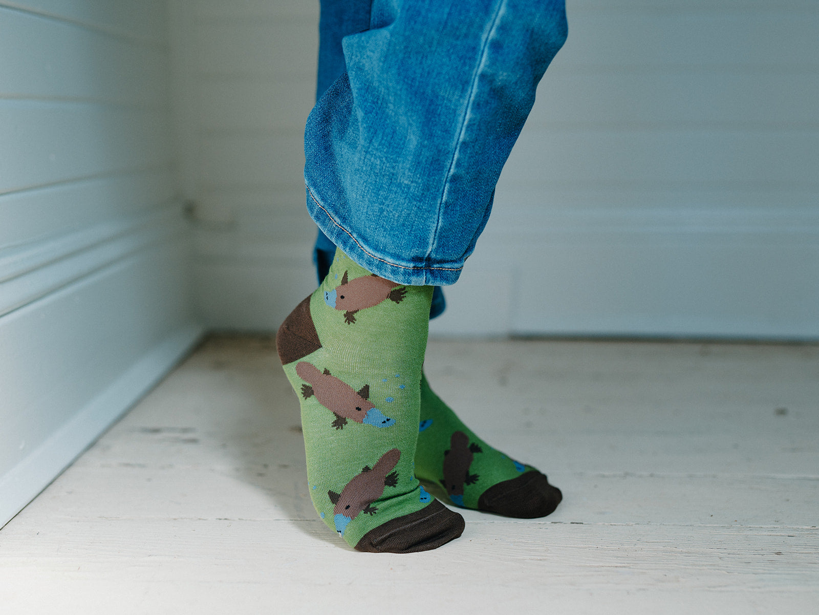 Designed in Tasmania, these charming Platypus Socks bring a touch of Australian wildlife to your wardrobe. Featuring an adorable platypus design, they’re crafted for comfort and style, making them a perfect everyday staple or a fun gift. Available in both adult and kids' sizes, they’re ideal for matching moments or solo wear. Soft, breathable, and made to last, these socks celebrate the beauty of Australia's unique fauna in a cosy, wearable way.