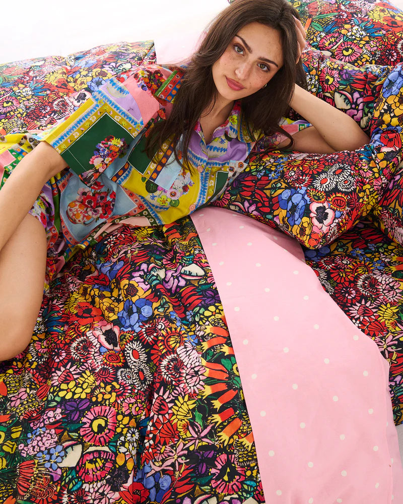 The Paradise print showcases Margaret Preston’s iconic florals in a kaleidoscope of vibrant hues, reimagined with Kip&Co’s signature playful twist.