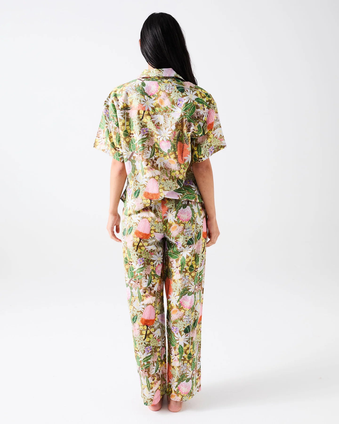 Crafted from ultra-breathable 100% organic cotton voile, it feels featherlight against the skin while keeping you cool and comfortable all year round. The Native Plantation print is a Kip & Co classic, featuring native Australian flora in a lush all-over design on a soothing olive green base — bringing a touch of nature-inspired charm to your downtime.