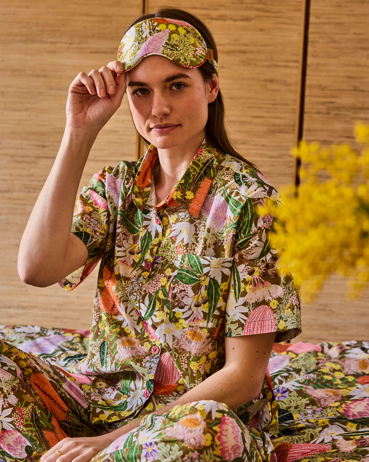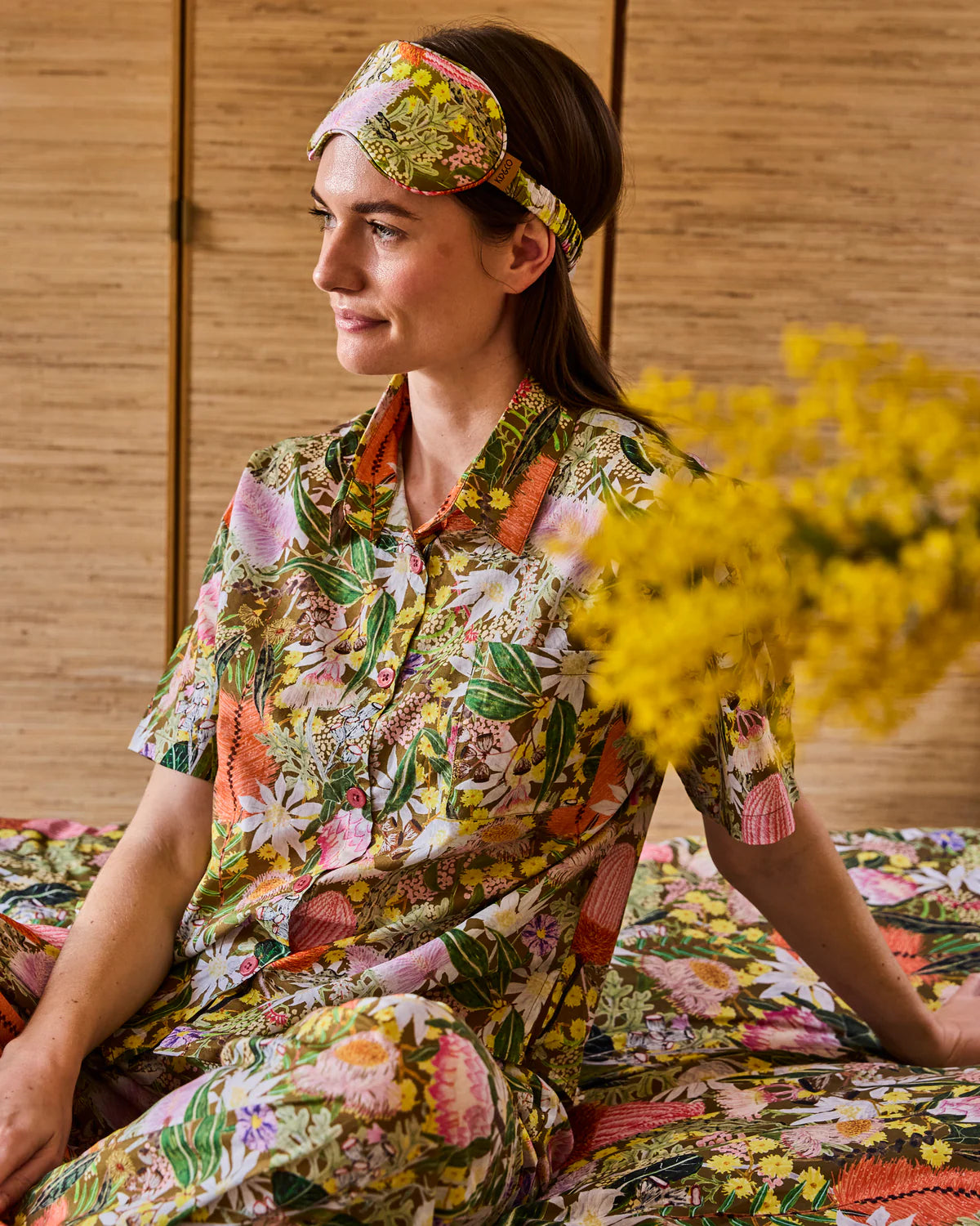 Dream in luxury with the Kip&Co Glow Getter Silk Eye Mask, featuring delicate native Australian blooms on an olive green base. Crafted from 100% mulberry silk (22 momme), this sleep essential is as beautiful as it is beneficial.