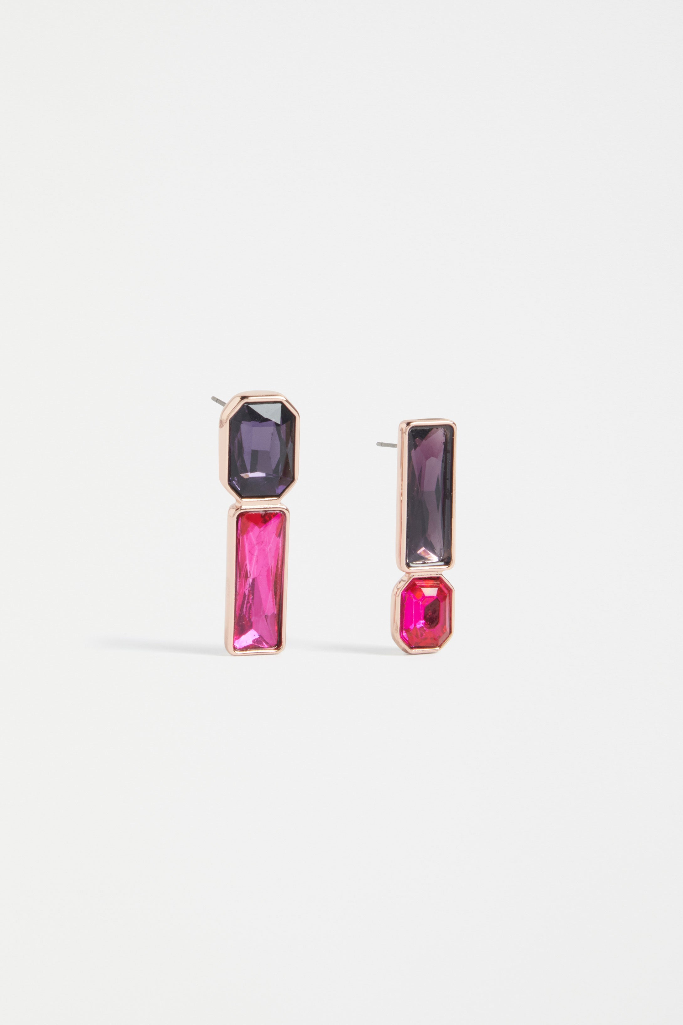 The Juvel Small Stud Earrings feature two-toned glass stone beads, elegantly set in a sleek metal base. With an asymmetrical design, each earring is the inverse of the other, creating a playful contrast that feels both contemporary and timeless. Available in vibrant bright Pink Berry.