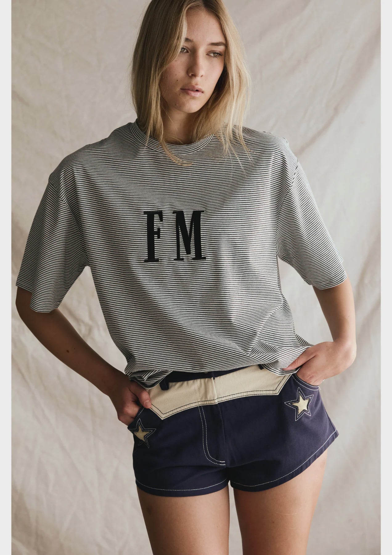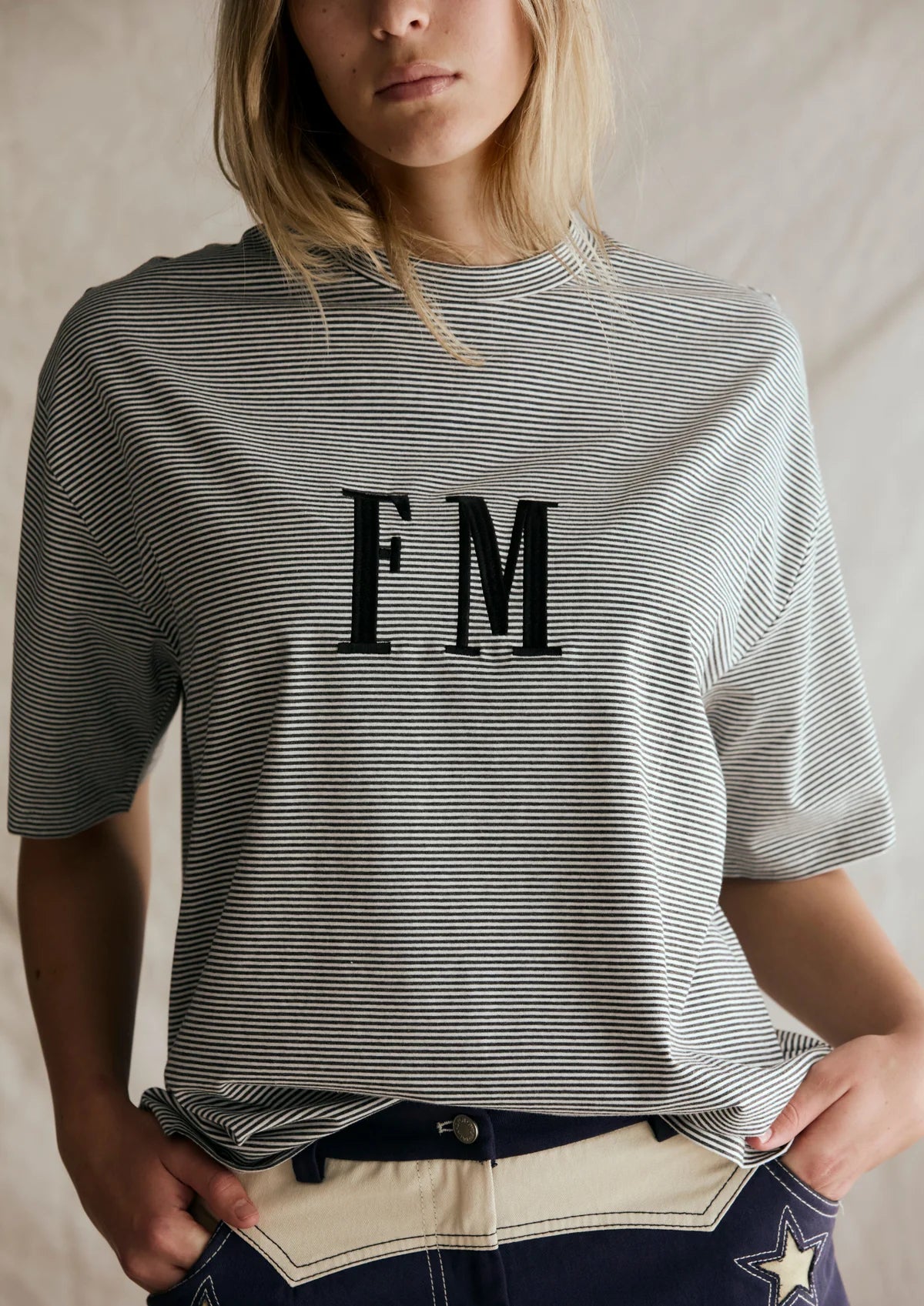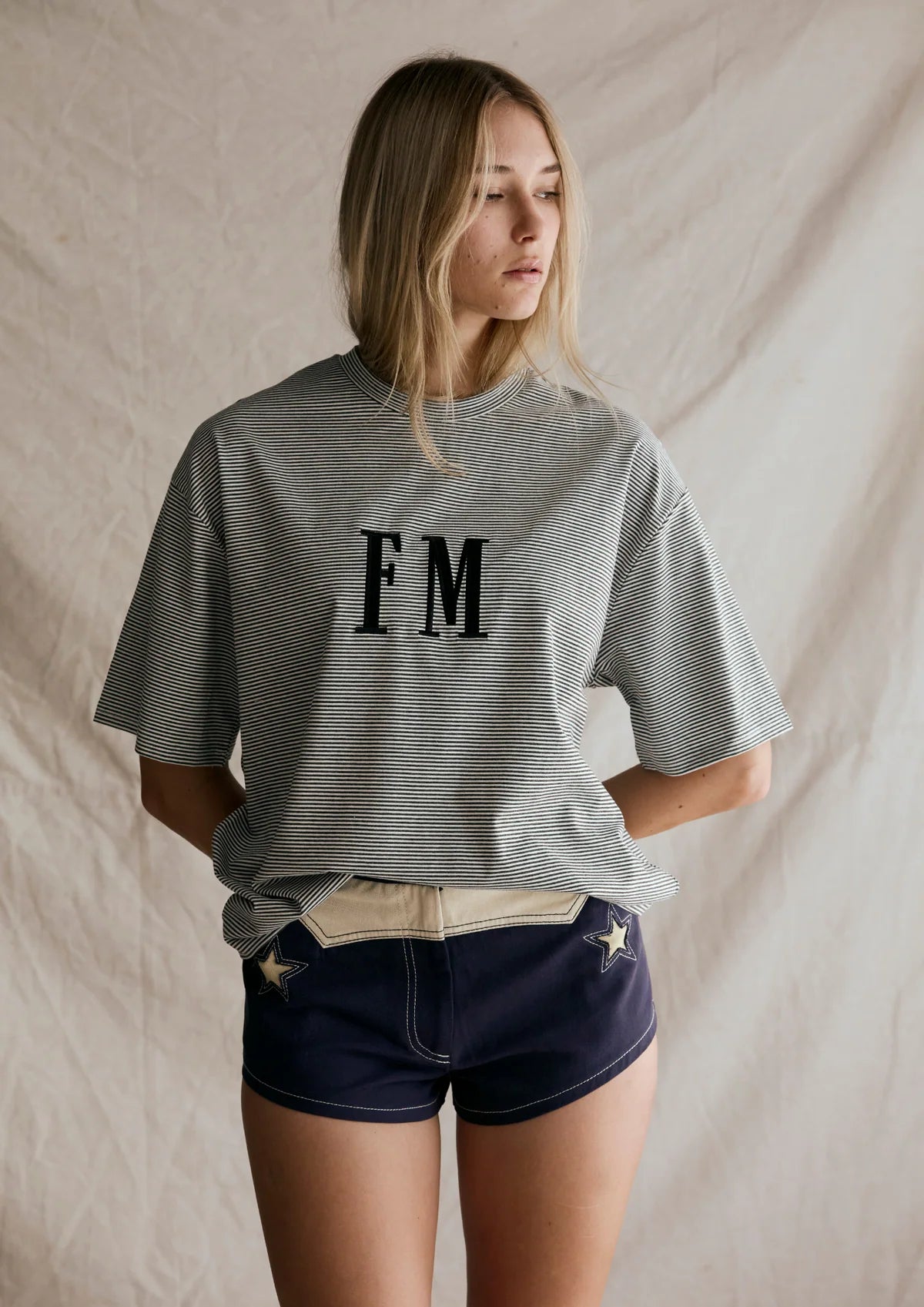 Meet your new go-to stripe. The Oversize Stripe Tee in Charcoal is cut from heavyweight cotton and finished with FM’s signature embroidery. Designed with an exaggerated boxy fit, it’s the kind of tee that only gets better with age — softening and fading for that perfect vintage patina. An easy throw-on with jeans, cargos or under a blazer.