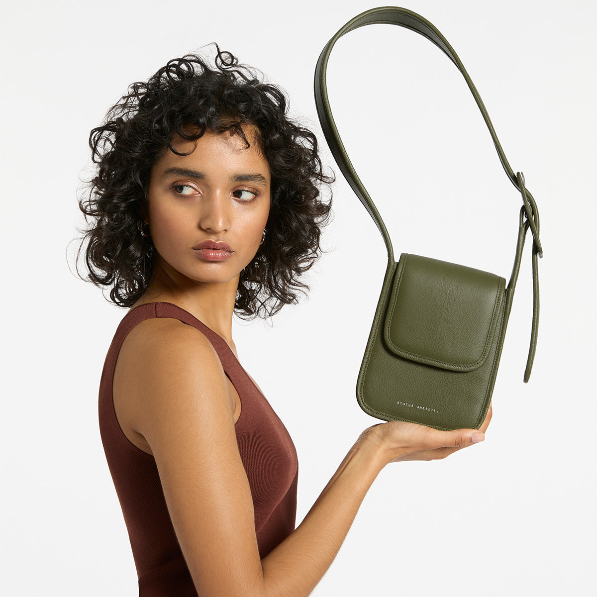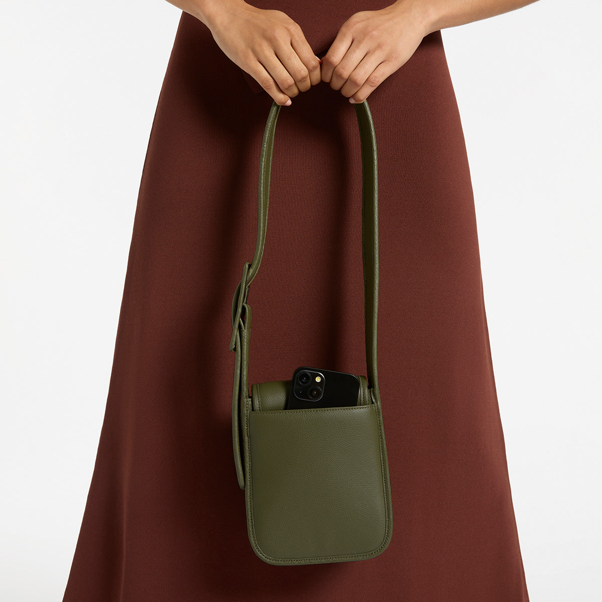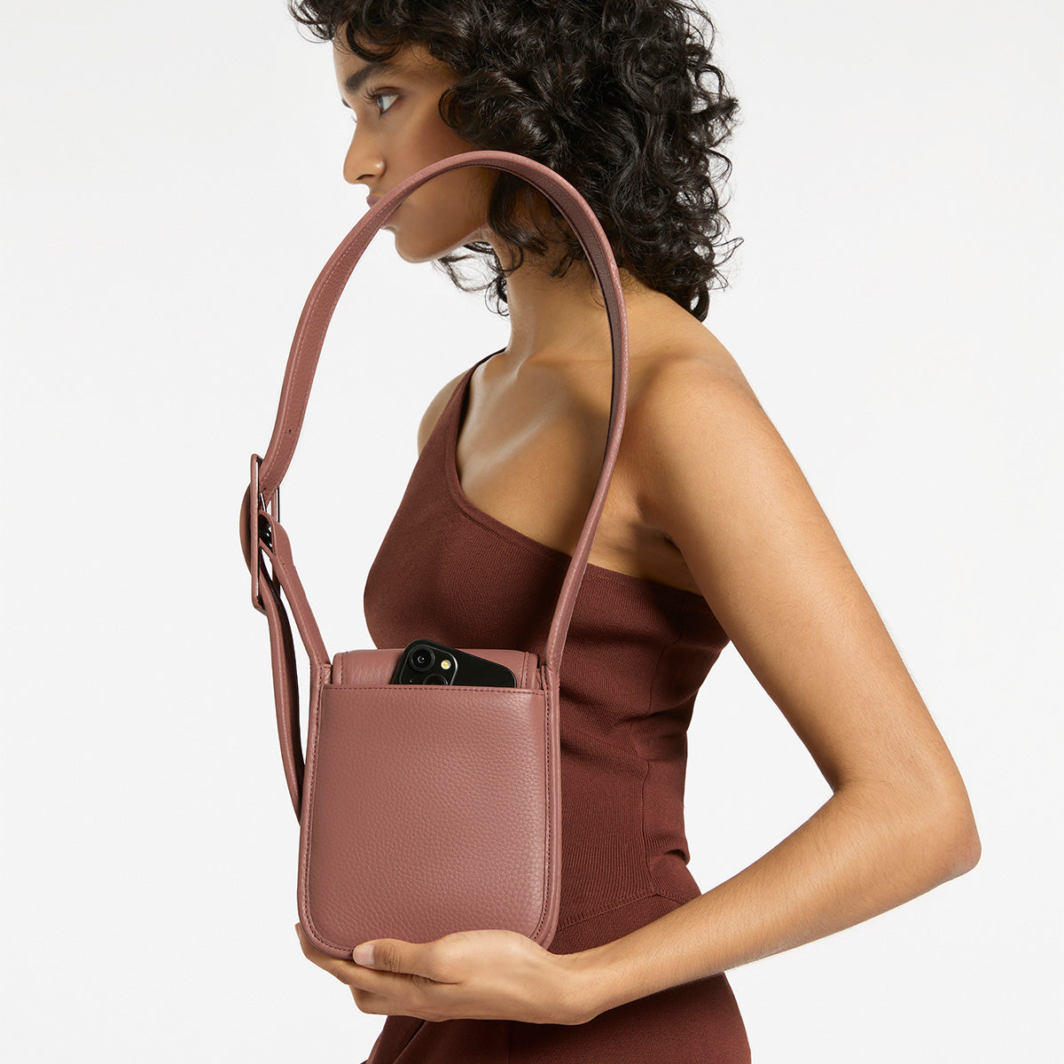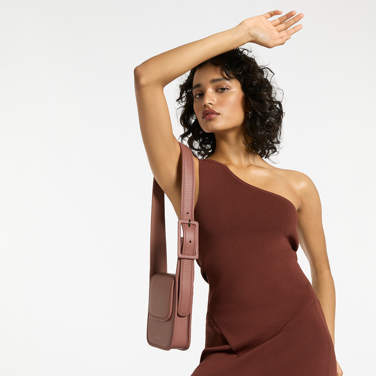 Confident and ready for anything, 'Perplex' is designed for those with places to be and people to see. Featuring a structured silhouette, a leather-wrapped buckle, a convenient back slider pocket for your phone, and a secure snap magnet closure, Perplex sits comfortably against your body—perfect for any day or night adventure.