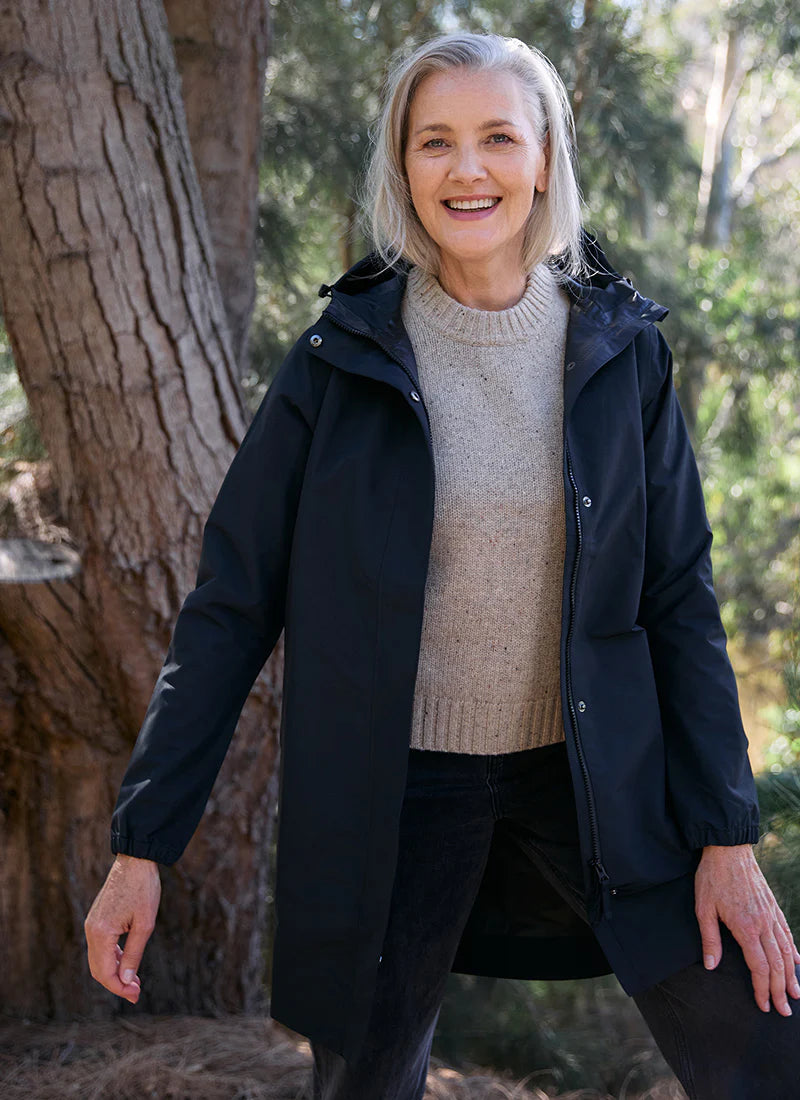 Sleek, functional, and designed to weather whatever the day throws at you. The Refuge Waterproof Jacket in Black is your no-fuss, go-everywhere raincoat lightweight, breathable, and windproof with a flattering A-line shape that layers beautifully.